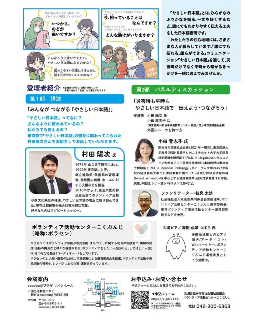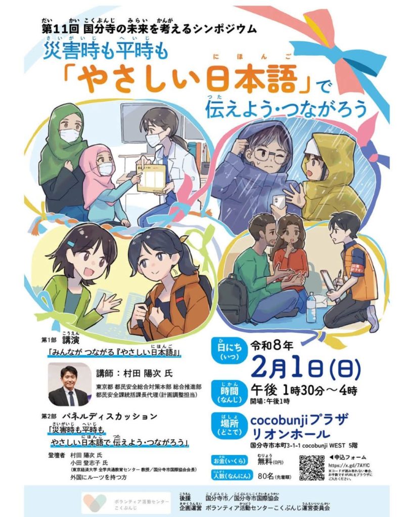 シンポジウムご案内:災害時も平時も「やさしい日本語」で伝えよう・つながろう/休診のお知らせ:2月1日